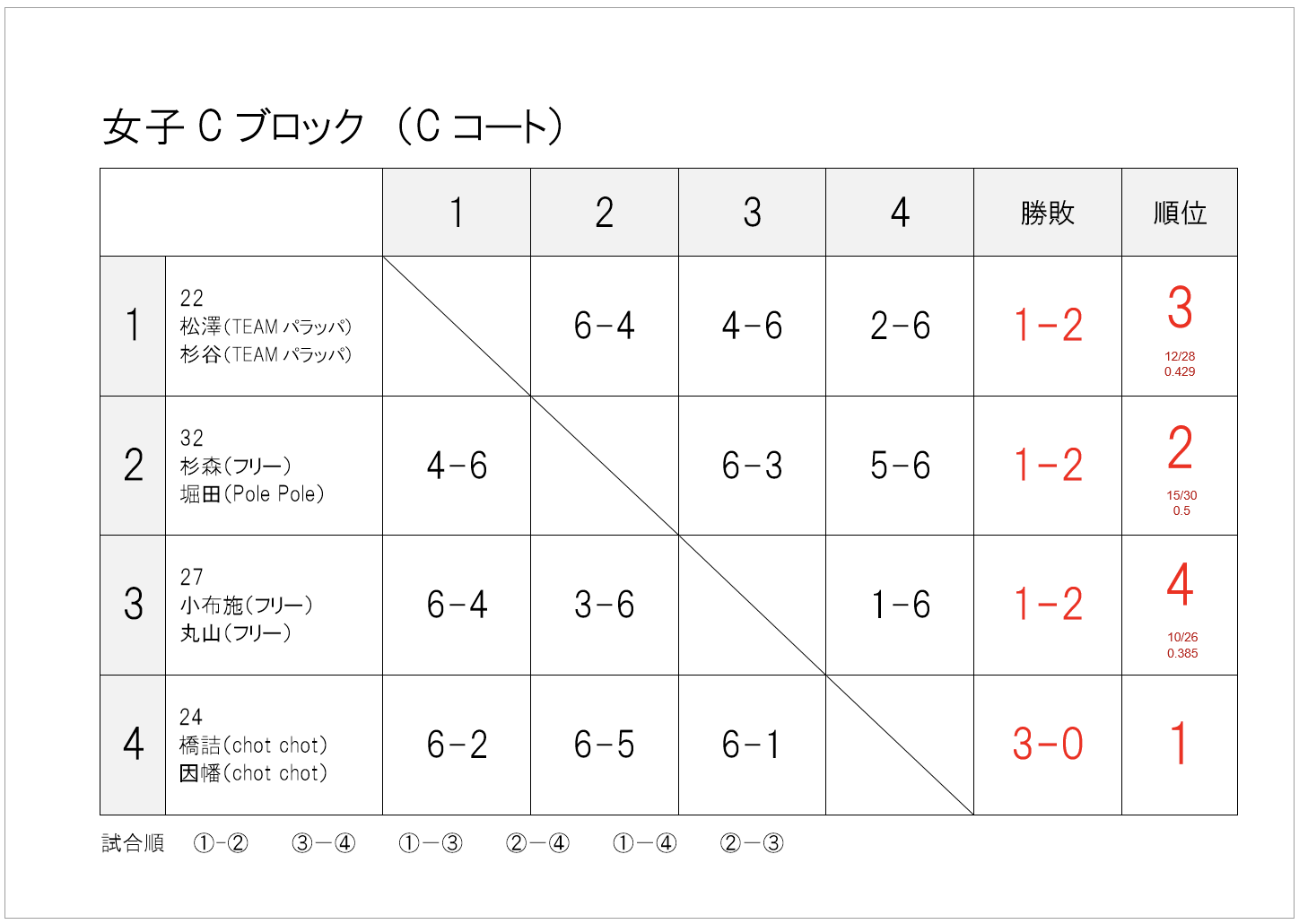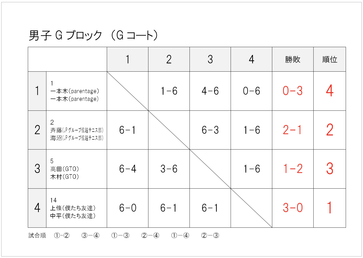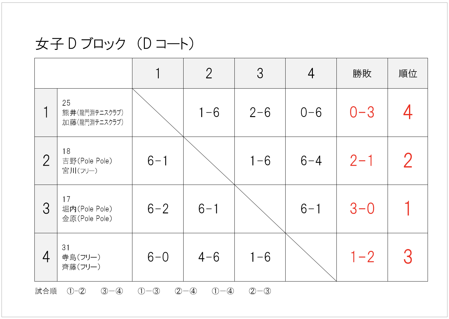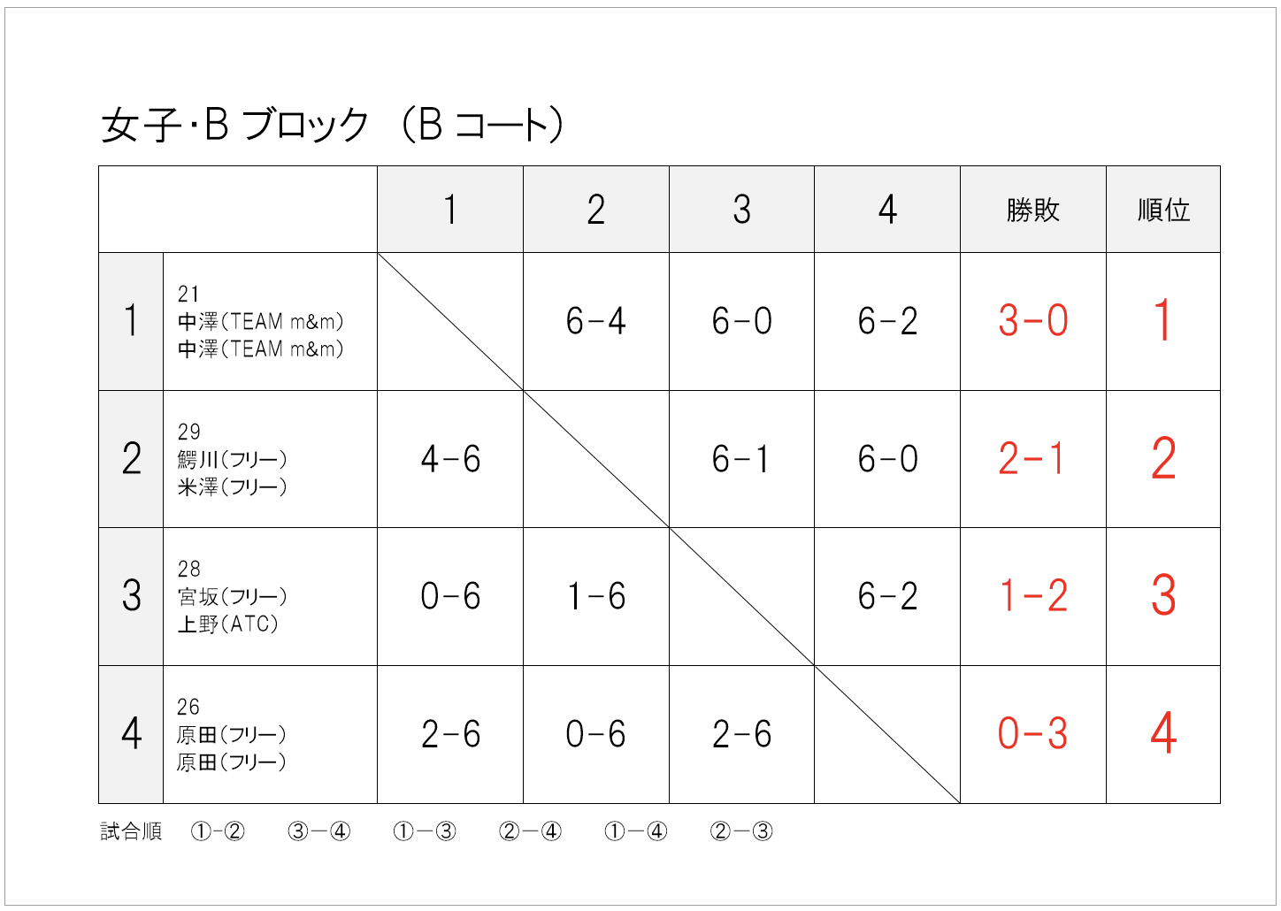 — infomation, 大会情報 — 2025年_春季大町庭協杯・結果 2025年5月19日 試合方法少し変更して行いました。暑さや花粉に苦しんだ1日でしたね。 1・2位トーナメント1位 1・2位トーナメント2位 1・2位トーナメント3位 1・2位コンソレーション1位 3・4位トーナメント1位 3・4位トーメント2位 3・4位トーナメント3位 3・4位コンソレーション1位 1・2位トーナメント1位 1・2位トーナメント2位 1・2位トーナメント3位 1・2位コンソレーション1位 3・4位トーナメント1位 3・4位トーナメント2位 3・4位トーナメント3位 3・4位コンソレーション1位 予選リーグ結果(クリックして拡大) 順位別トーナメント結果(クリックして拡大)
