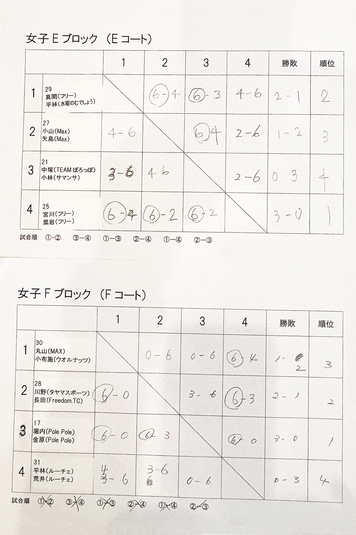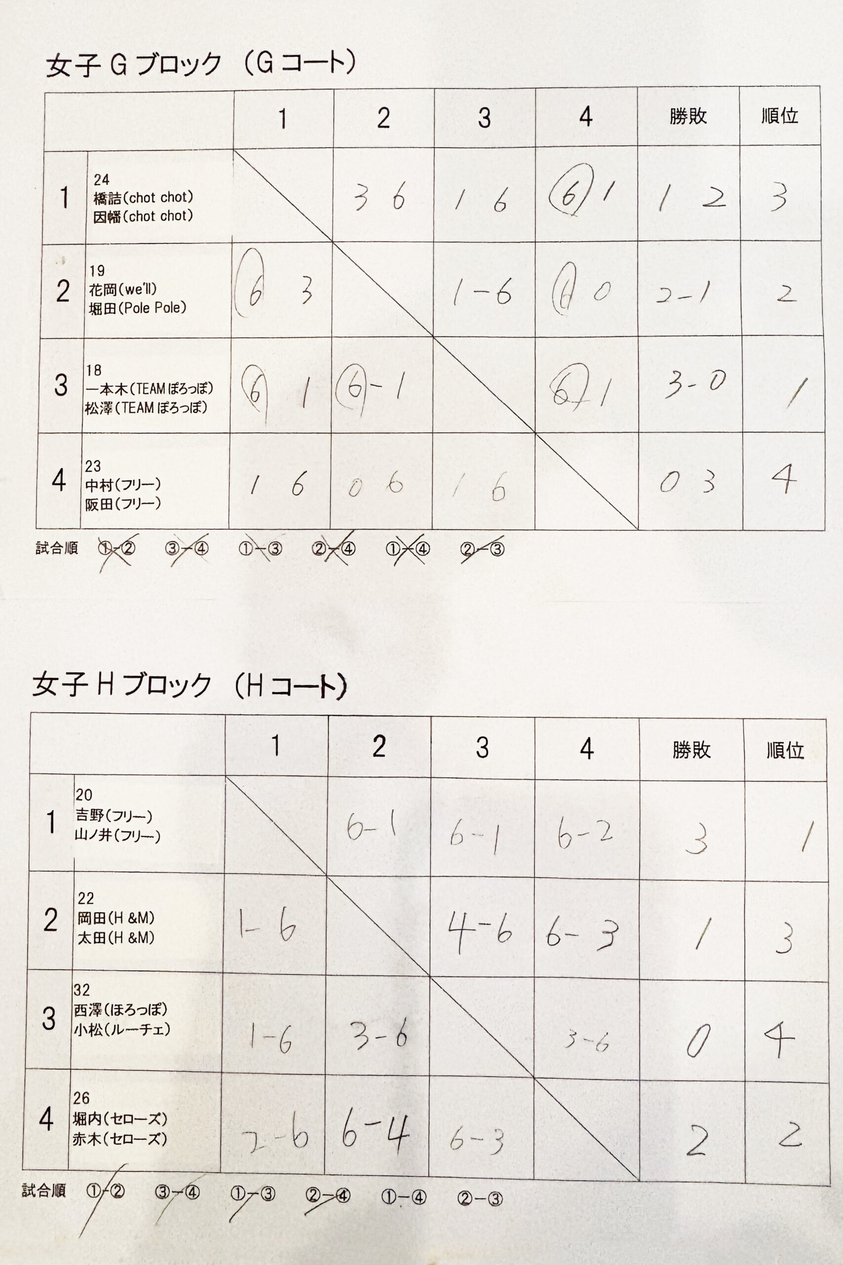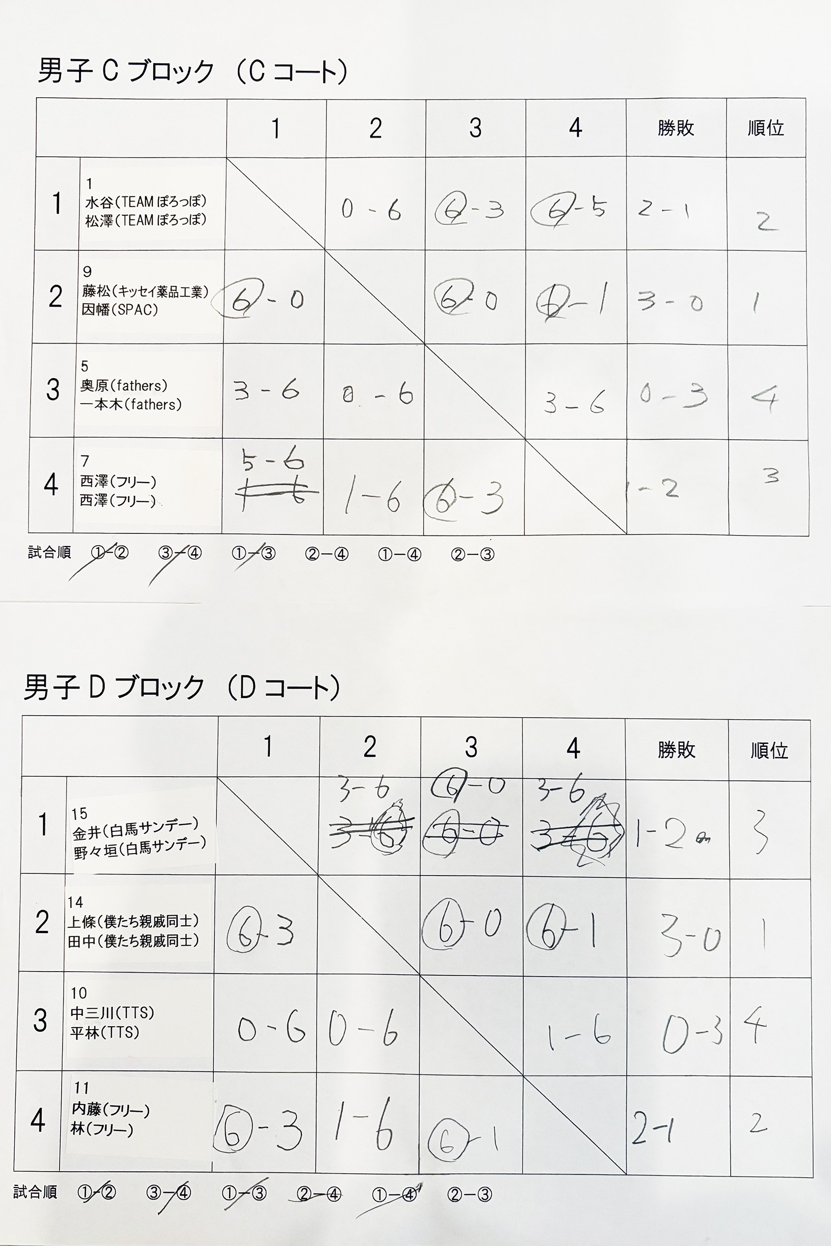 — infomation, 大会情報 — 2025年_秋季大町庭協杯・結果 2025年9月8日 秋晴れのテニス日和の1日でした。参加された皆様お疲れ様でした。結果報告です。 予選リーグ結果 順位別トーナメント結果 男子優勝 男子準優勝 男子3位 男子下位トーナメント1位 男子下位トーナメント2位 男子下位トーナメント3位 女子優勝 女子準優勝 女子3位 女子下位トーナメント1位 女子下位トーナメント2位 女子下位トーナメント3位