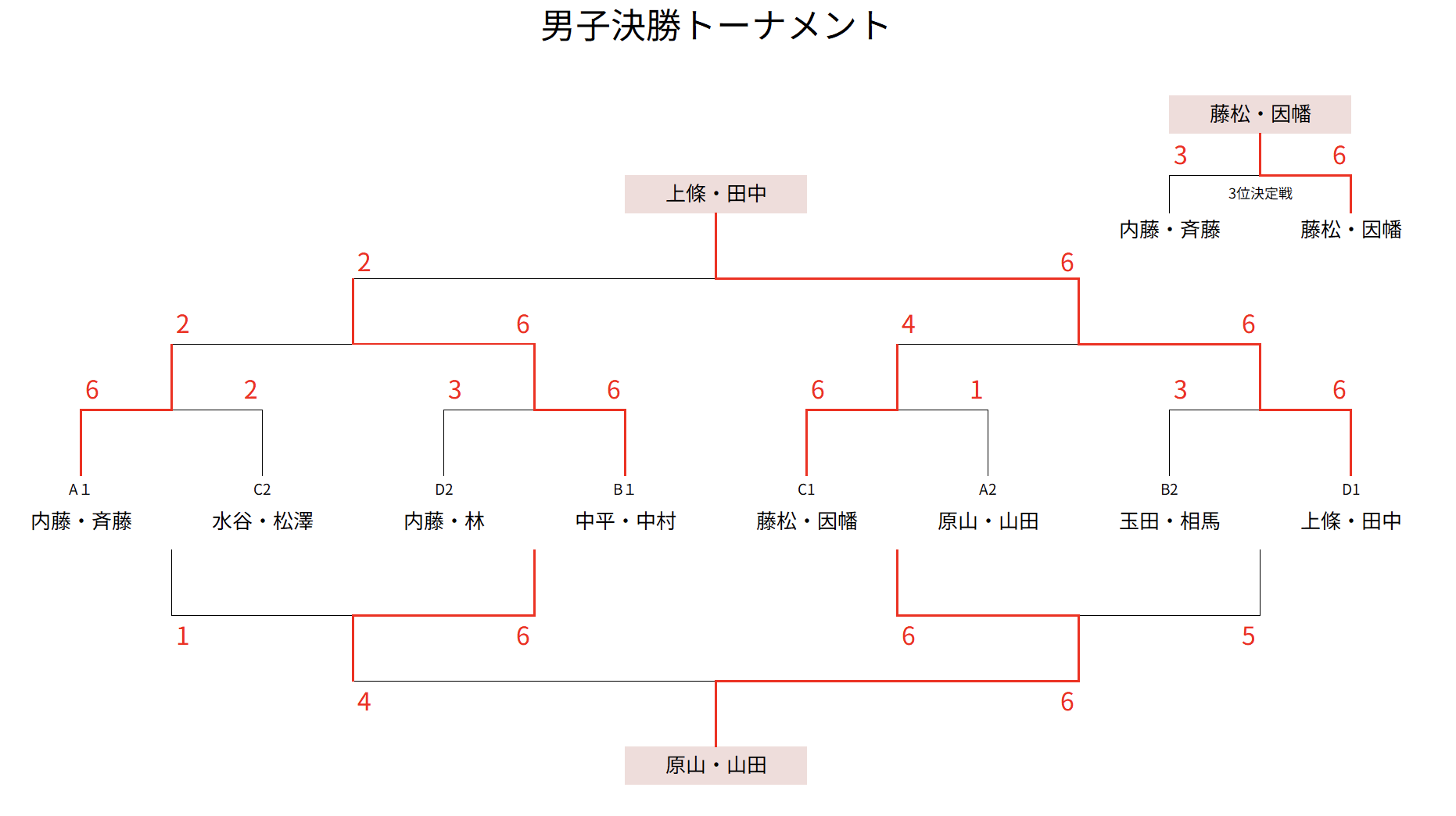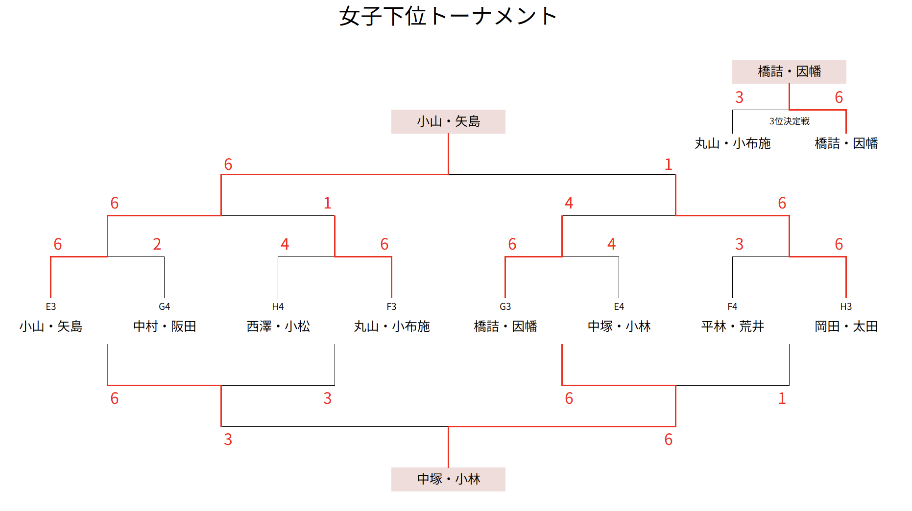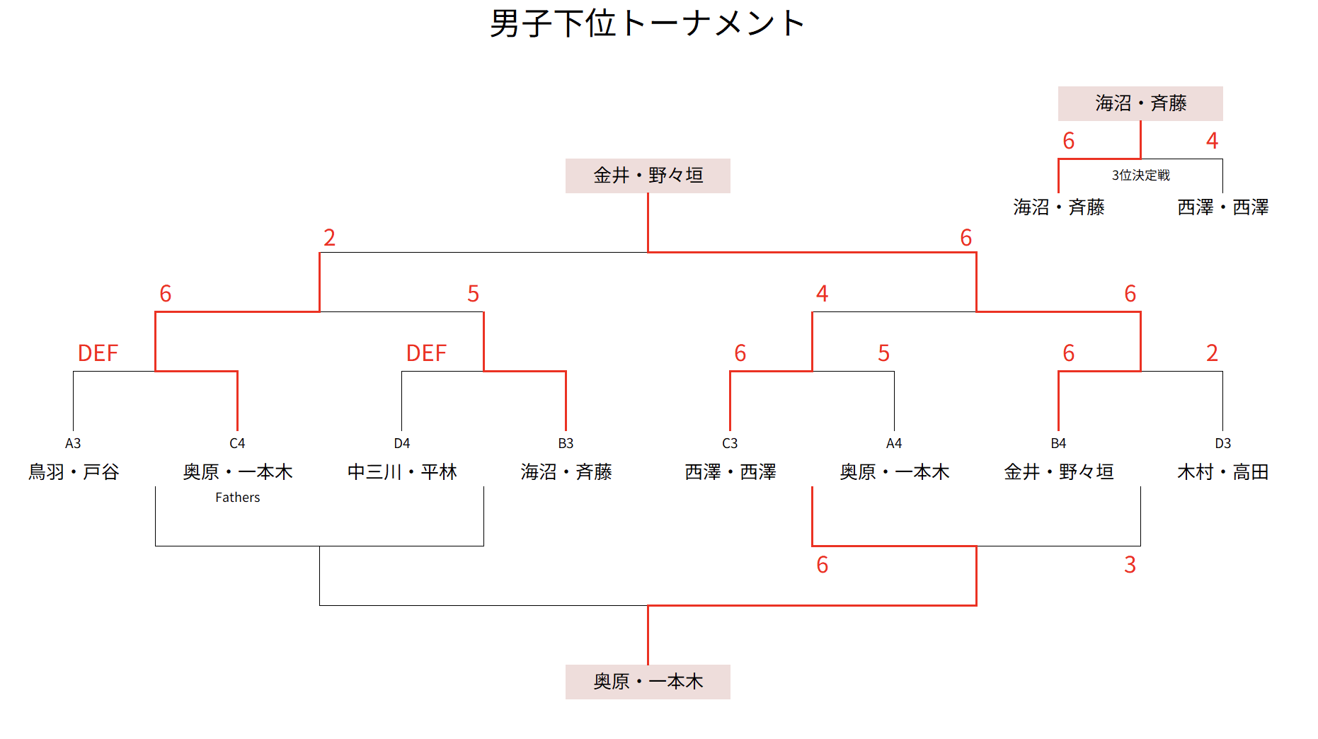 — infomation, 大会情報 — 2025年_秋季大町庭協杯・結果 2025年9月8日 秋晴れのテニス日和の1日でした。参加された皆様お疲れ様でした。結果報告です。 予選リーグ結果 順位別トーナメント結果 男子優勝 男子準優勝 男子3位 男子下位トーナメント1位 男子下位トーナメント2位 男子下位トーナメント3位 女子優勝 女子準優勝 女子3位 女子下位トーナメント1位 女子下位トーナメント2位 女子下位トーナメント3位
